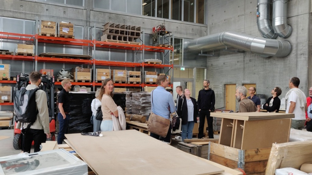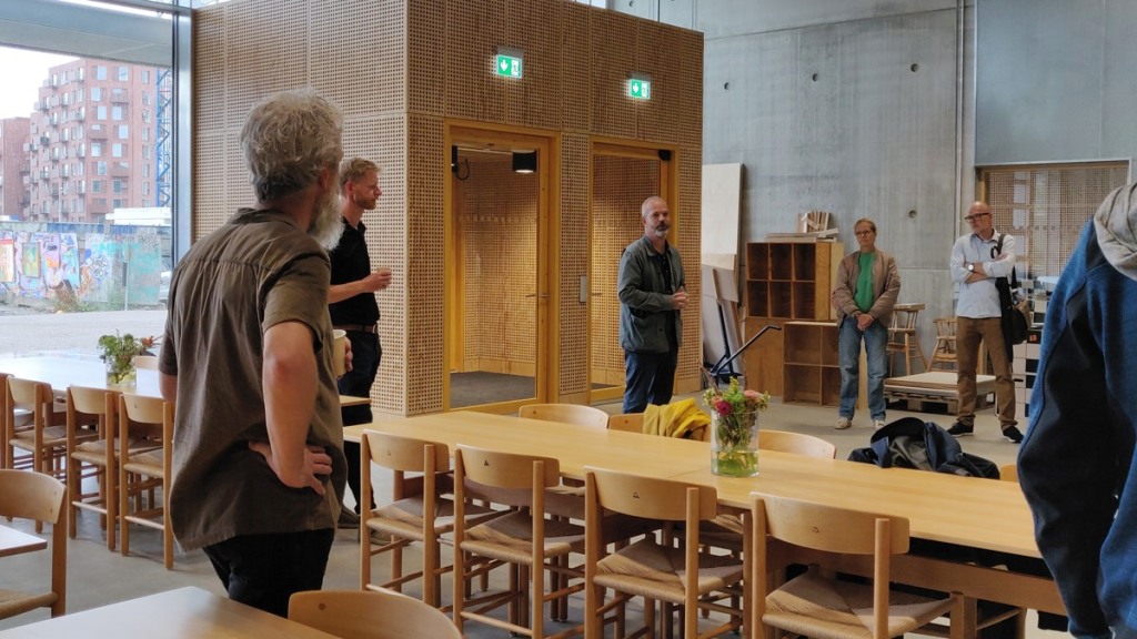 Bygningen indeholder udover de store tegnesale, auditorier, kontorer og bibliotek også omfattende værkstedsfunktioner, der har fået en central placering i bygningen. Kristine Leth Juul, prorektor ved arkitektskolen, fortæller om projektforløbet fra de indledende konkurrencer til den anvendte "New Partnering" model. Gert Hedegaard fra A. Enggaards A/S, der er projektleder på byggeriet, vil fortælle om tilrettelæggelsen og gennemførelsen af selve byggefasen med fokus på digitale redskaber til projektstyring. De to oplægsholdere vil fremvise nogle af de vigtigste steder i bygningen.